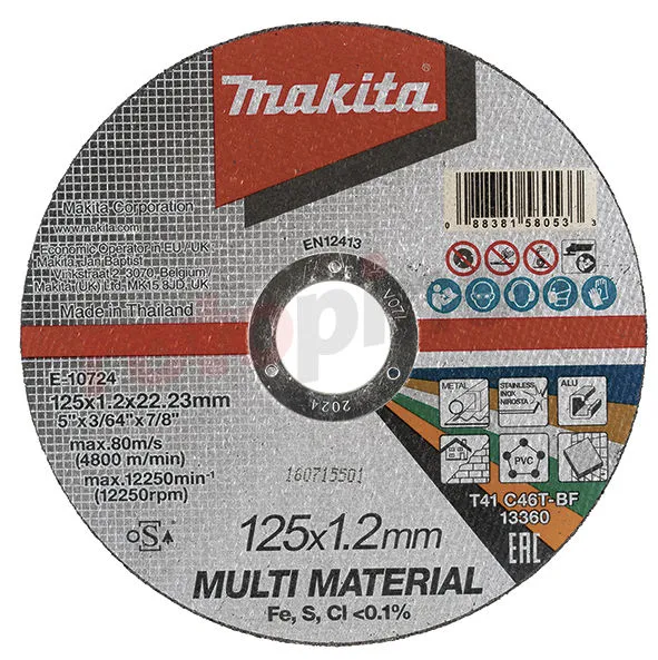Le disque à tronçonner universel 125mm Makita E-10724 permet de couper des matériaux tels que le métal, l’acier inoxydable, le PVC ou la brique, ce qui prouve sa polyvalence.