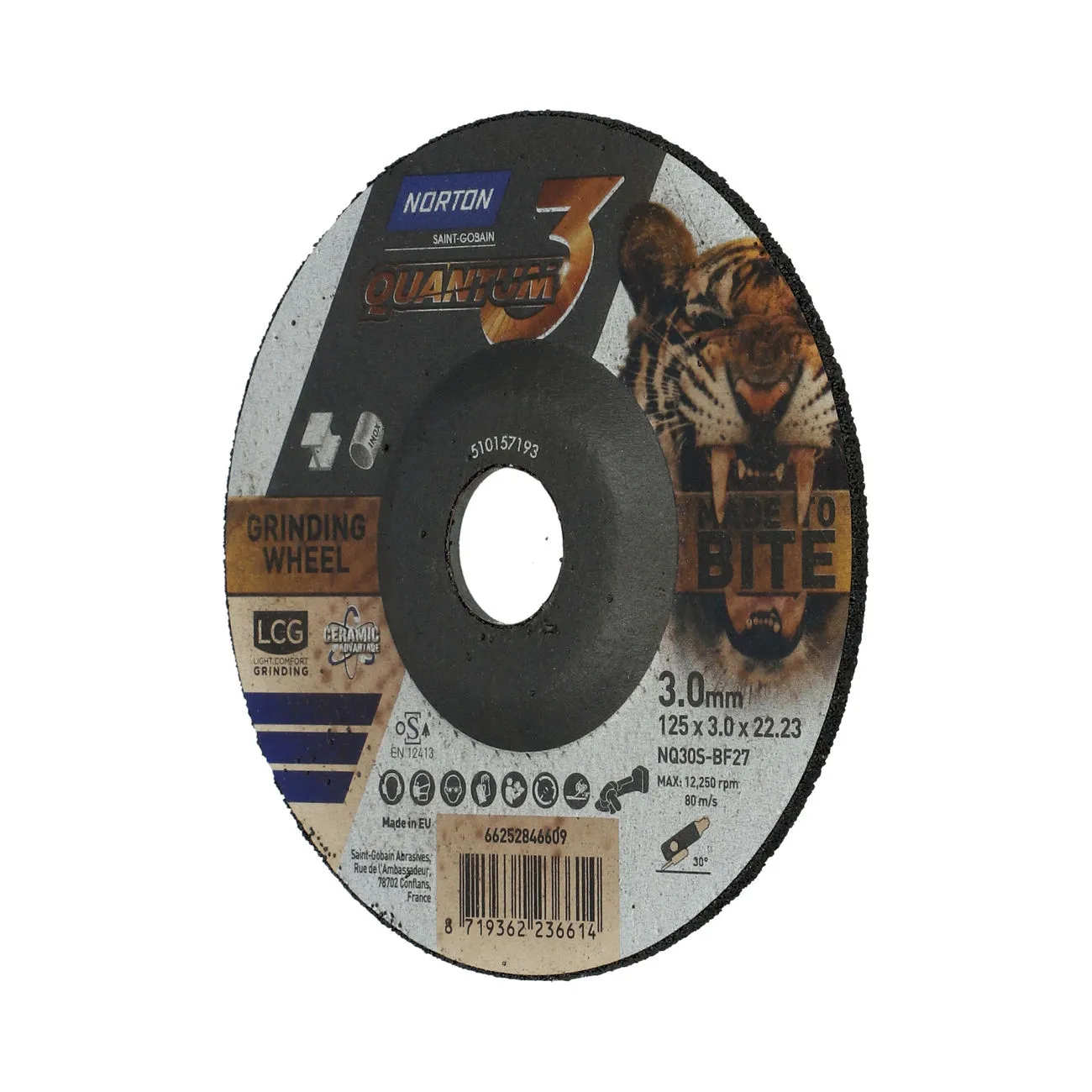Disque de coupe Norton QUANTUM3 125×3.0x22.23 est un disque de coupe en métal et en acier inoxydable pour les meuleuses d’angle.