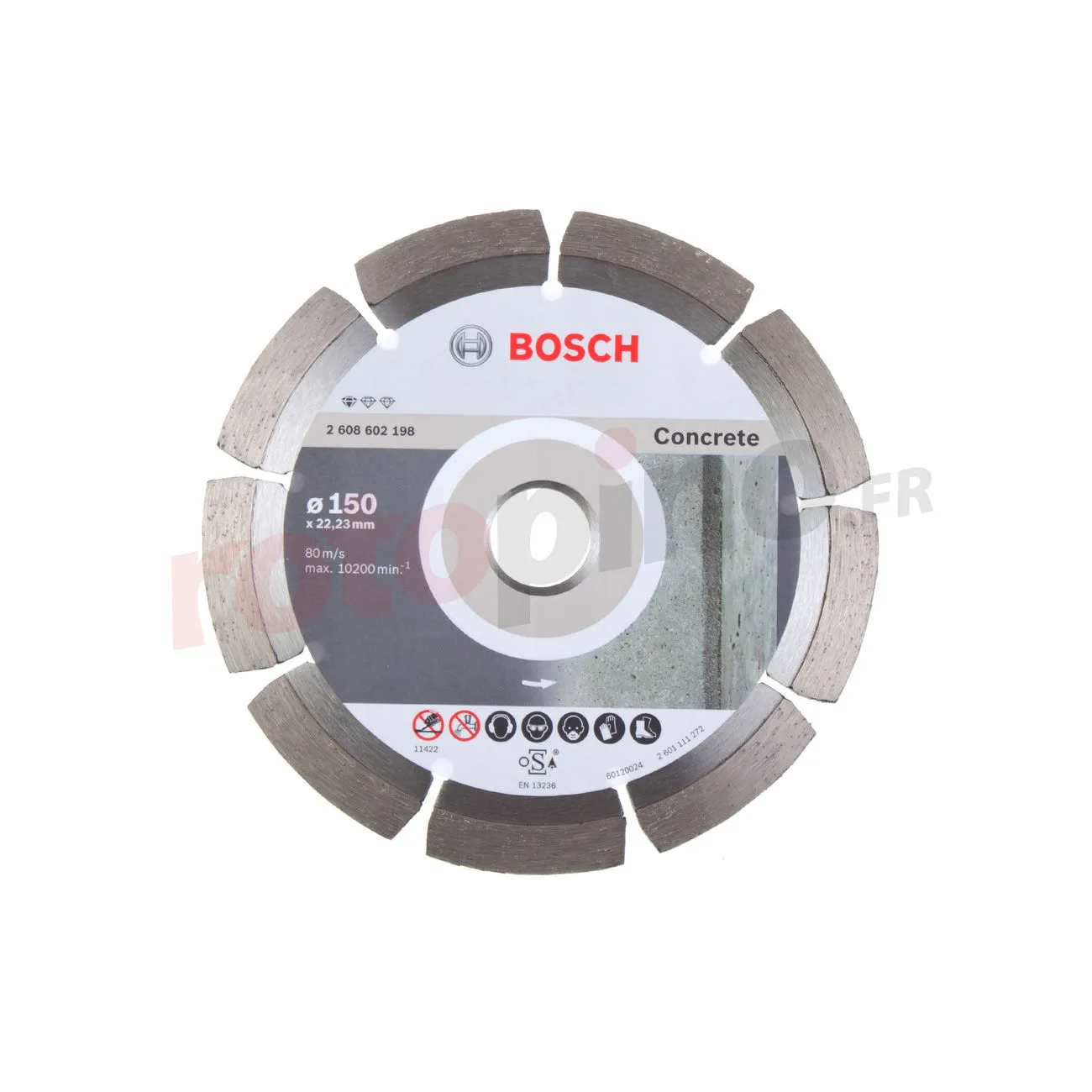 - Le disque diamant à béton Professional for Concrete 150 de Bosch est une solution idéale permettant de résoudre tous les problèmes pouvant être liés au tronçonnage de différents matériaux de construction