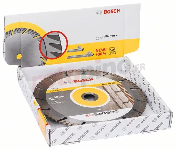 Disque à tronçonner diamant Standard pour Universal Bosch 2608615066 est un accessoire pour meuleuses angulaires, scies à essence et à table adaptées au travail avec des accessoires d’un diamètre de 230 mm. La lame fonctionne bien lors de la découpe de divers éléments de construction. Il permet de couper du béton armé, de la brique et du calcaire.