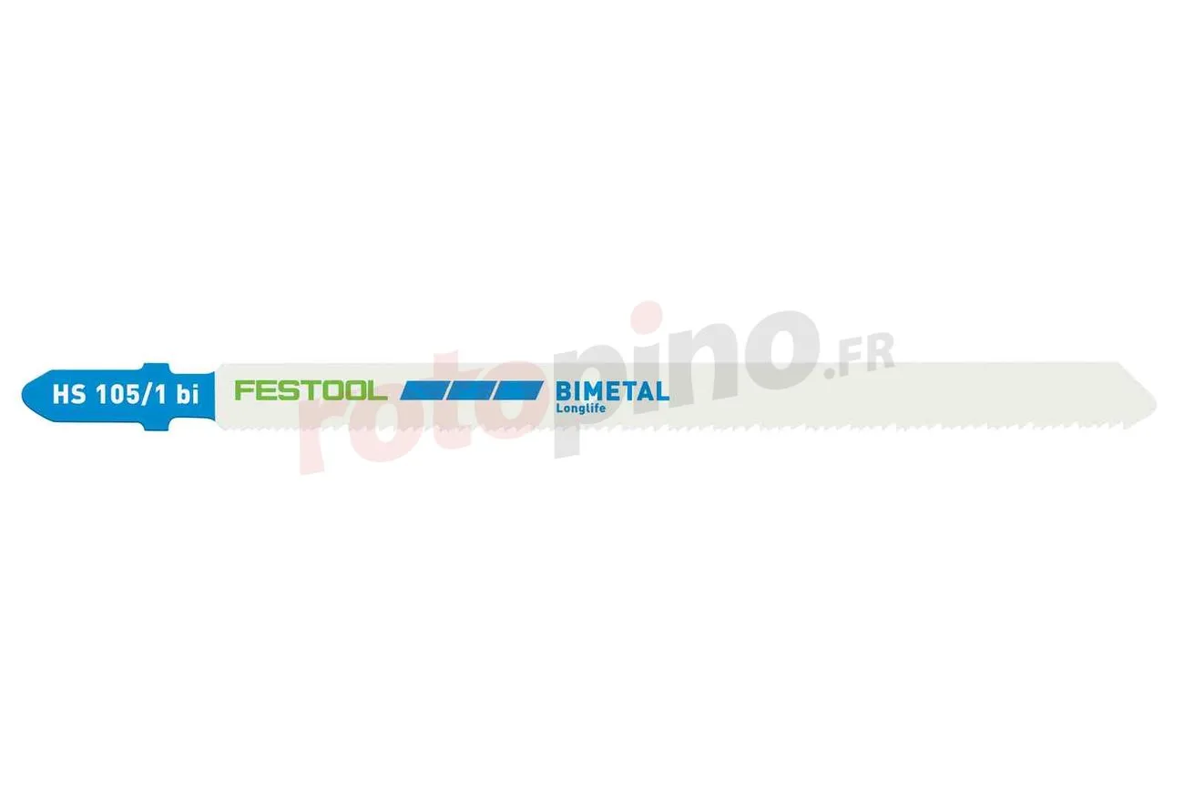 Lame 105x1mm 5pc. HS 105/1 BI/5 Festool 204272 est conçu pour l’aluminium, l’acier et les métaux non ferreux, grâce à la forme ondulée du bi-métal HCS.
