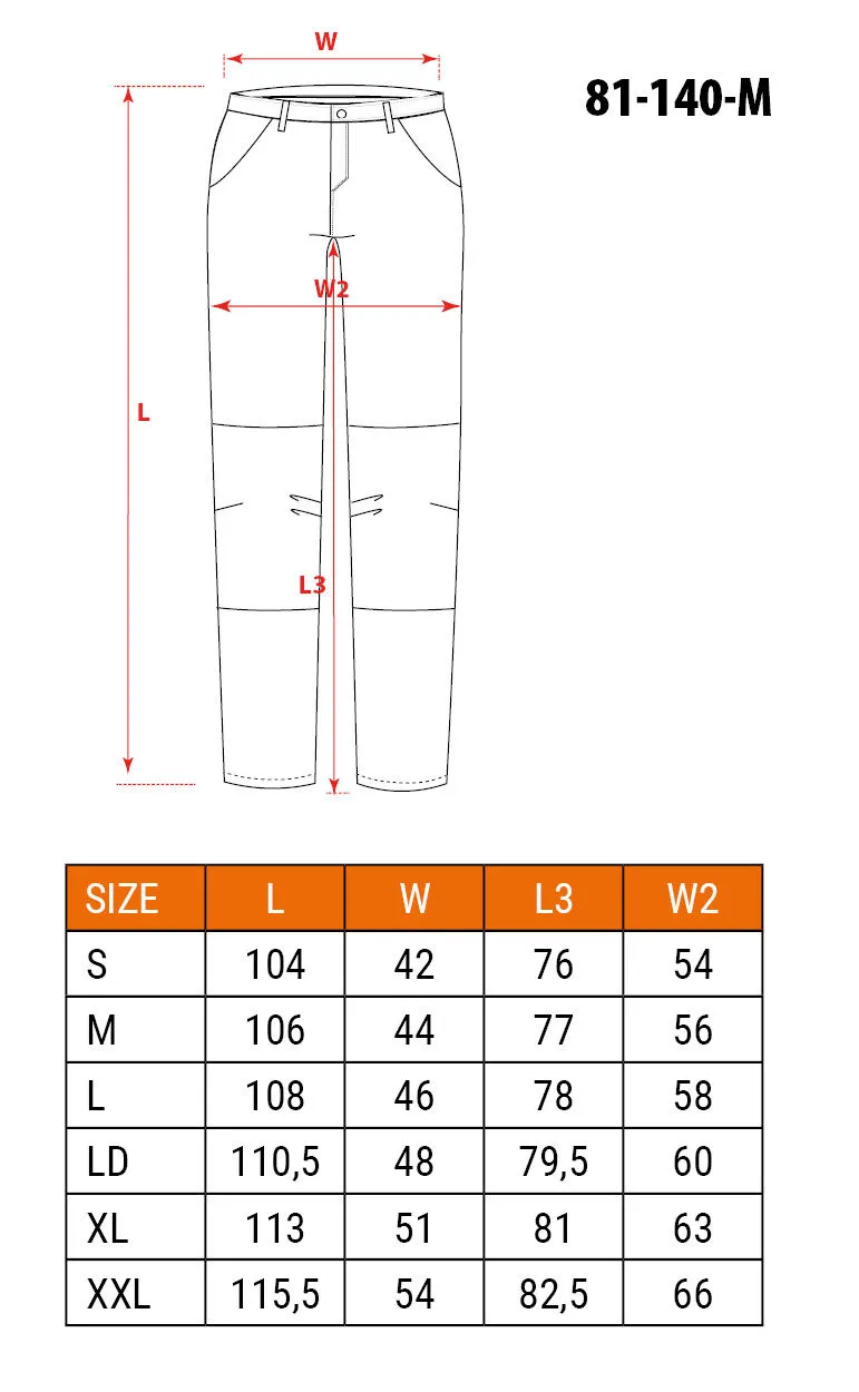 Pantalon de travail avec bretelles salopettes 81-140-L Neo Utiles au cours du travail. Vêtement se caractérise par son puissant matériau de résistance, les genoux, les renforts de poches, triples coutures. Poche téléphone