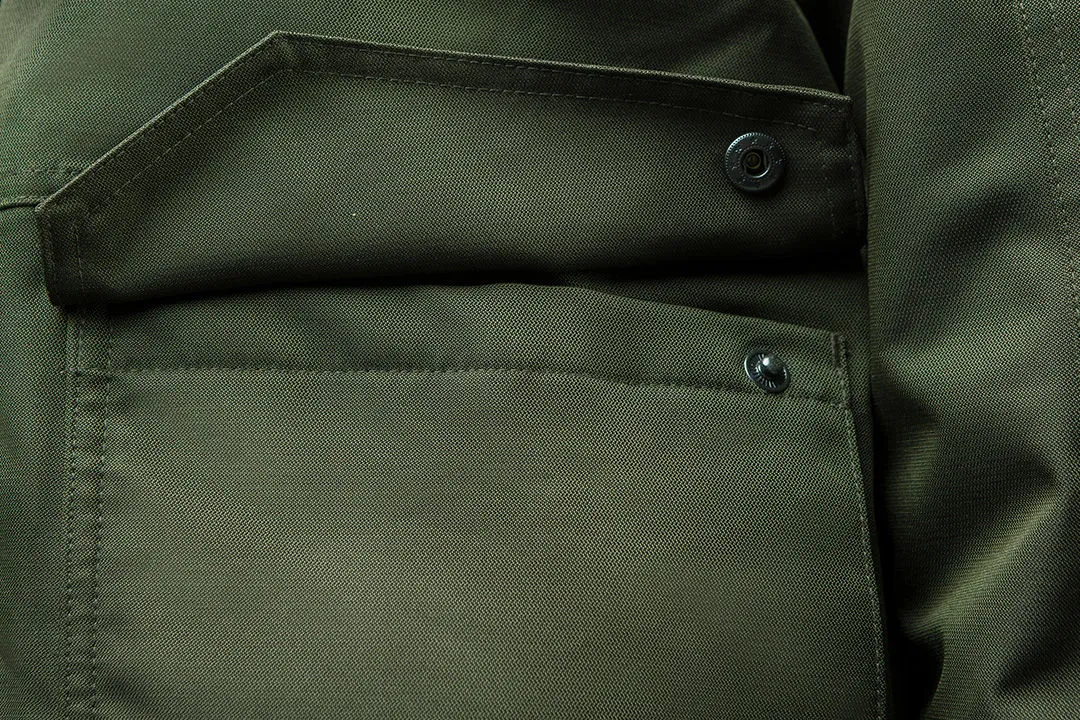 La veste de travail L Camo Neo 81-573-L a un revêtement en membrane TPU, grâce à laquelle elle offre une bonne protection contre le gel. La haute résistance à l’eau permet de porter la veste sous la pluie. La capuche est réglable dans le col montant, ce qui permet de l’ajuster aux besoins de l’utilisateur. La languette Velcro permet d’ajuster la circonférence des manches, en l’adaptant aux mains de l’opérateur. Le col montant haut protège du vent. Une poche intérieure, une poche au niveau de la poitrine zippée et deux poches supérieures et inférieures permettent de transporter en toute sécurité des objets importants tels qu’un portefeuille ou un téléphone. Des éléments réfléchissants assurent la bonne visibilité du porteur dans des conditions difficiles. Insert intérieur pour une identification rapide du propriétaire de la veste.